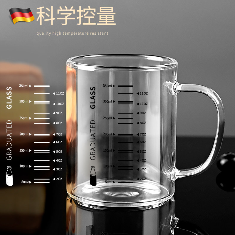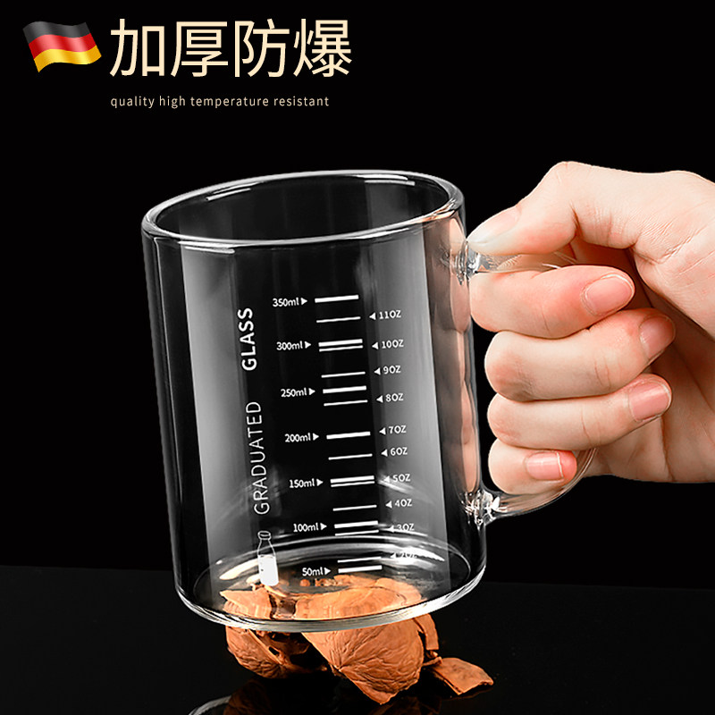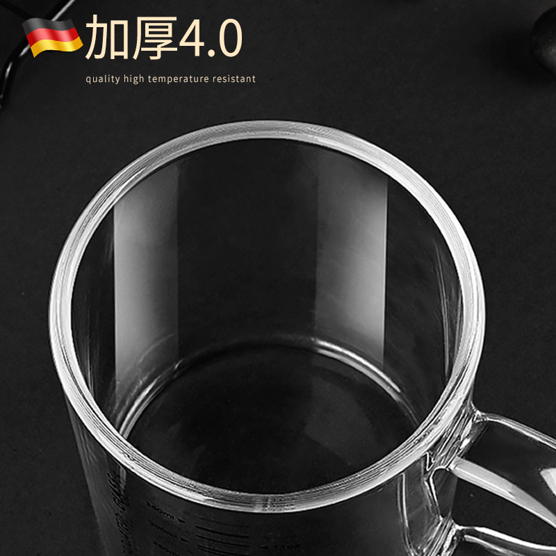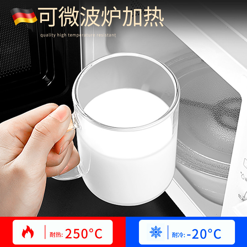 德国高硼硅玻璃牛奶杯可加热刻度杯家用儿童早餐杯水杯带盖可微波