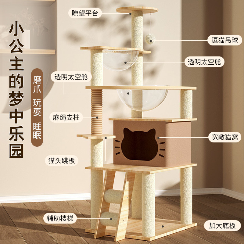 猫爬架猫窝猫树一体猫架子大型太空舱猫窝剑麻抓柱不占地猫咪用品