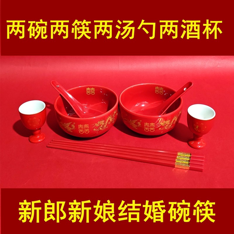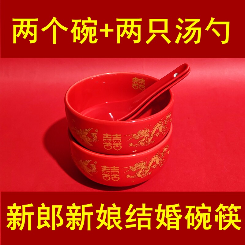 推荐理由:结婚陶瓷喜碗新娘新郎喜庆龙凤碗筷红汤勺新婚宴新人陪嫁喜碗餐具