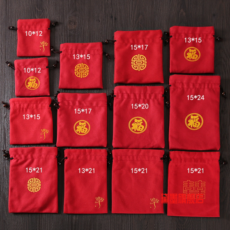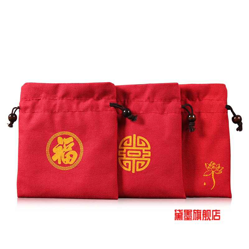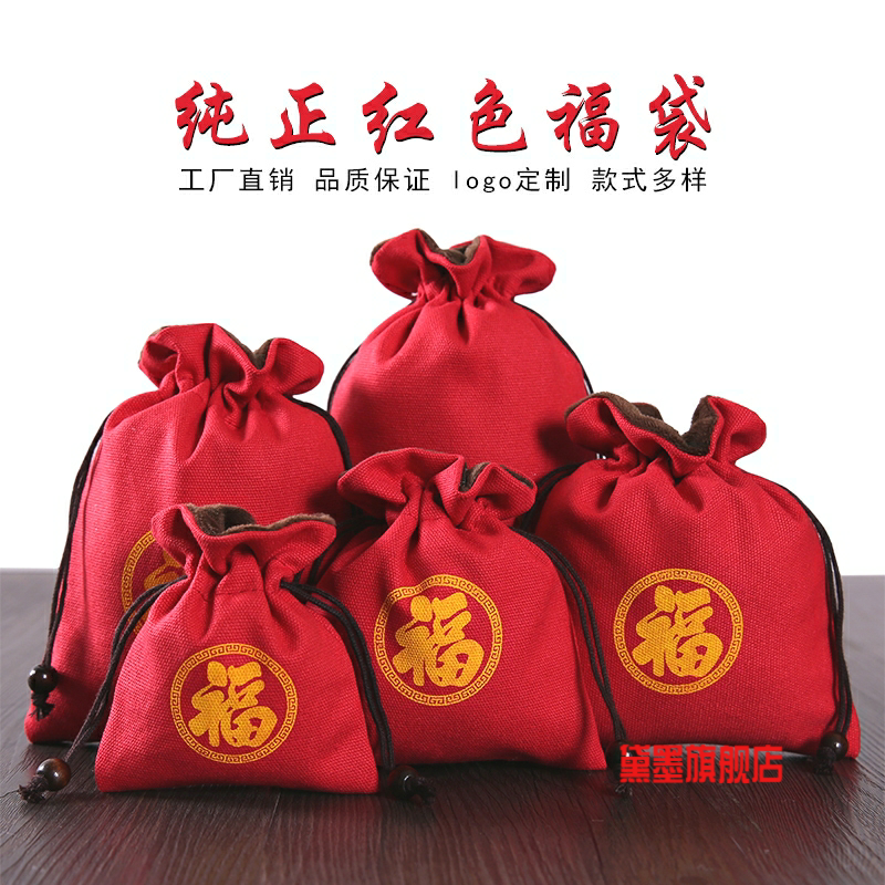 推荐理由:红色棉麻小福袋抽绳束口小布袋珠宝首饰绒布袋文玩手串锦囊礼品袋