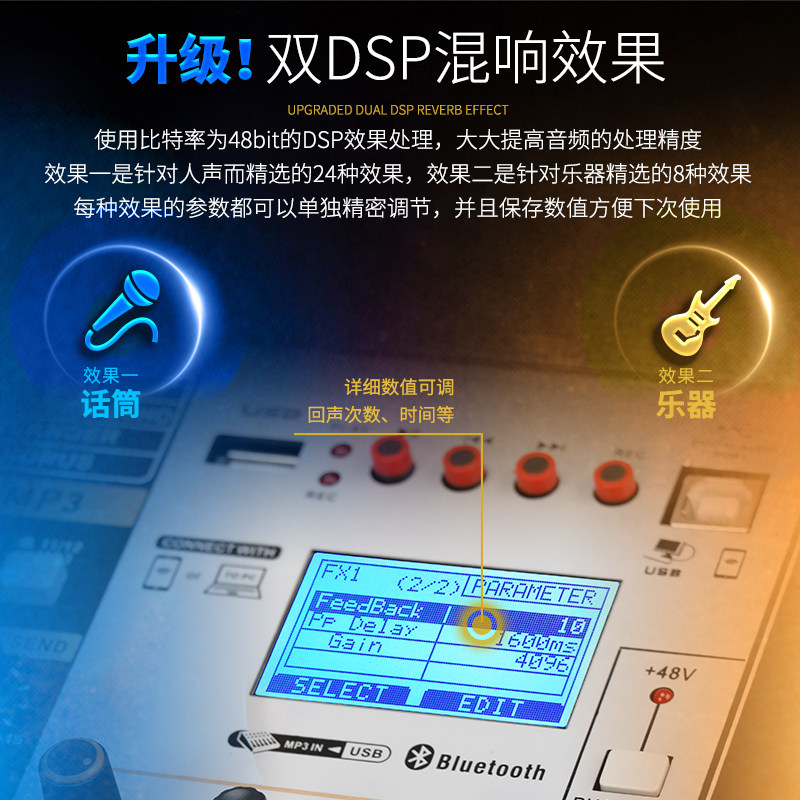 推荐理由:四编组 双效果 独立电平显示 OTG声卡