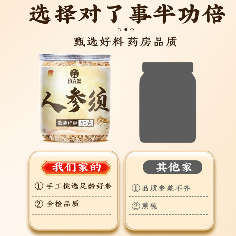 推荐理由:人参须人参长白山搭野生山参正品参须根白参须西洋参须人叁中薬材