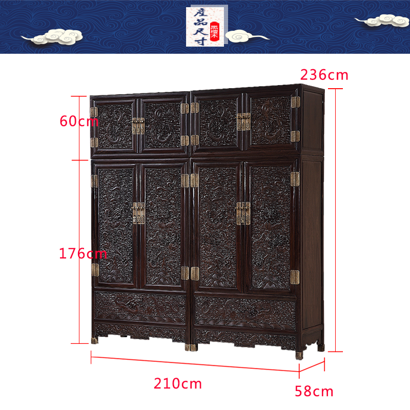 推荐理由:黑檀顶箱柜雕龙衣柜实木大衣柜衣橱四门中式仿古红木原木家用卧室