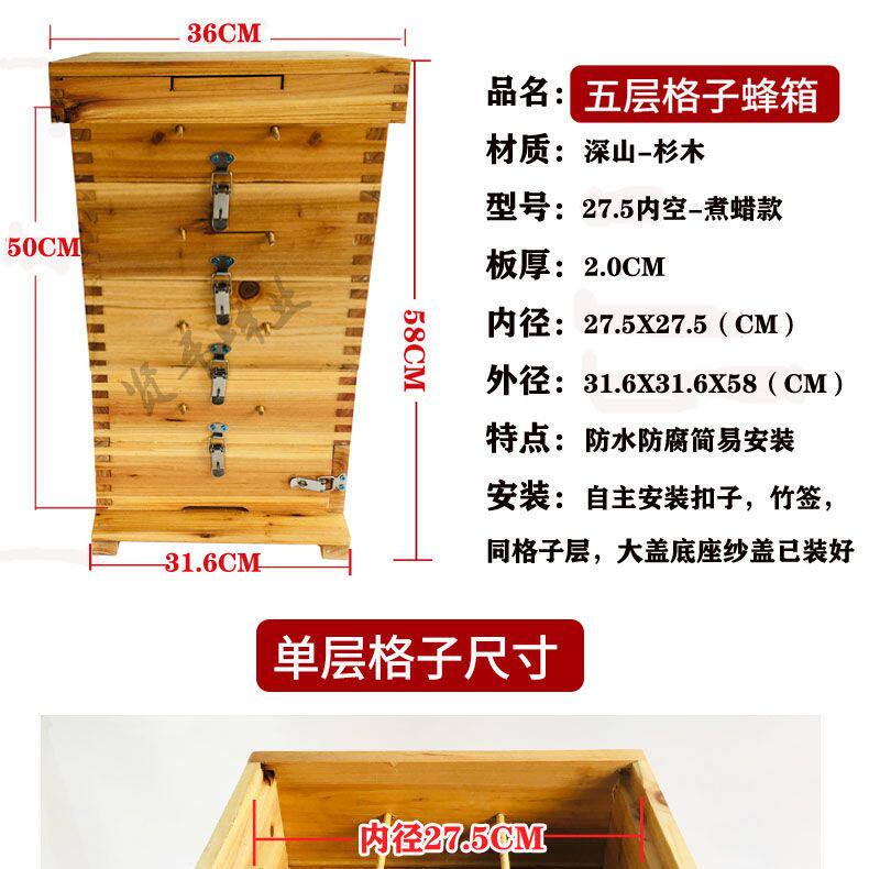 蜜蜂加厚蜂箱全套杉木五层方格子养蜂专用中蜂格子箱原木煮腊碳化