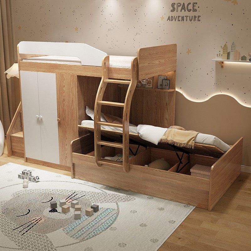 推荐理由:实木平行交错式上下床带衣柜一体错位型高低床多功能小户型子母床