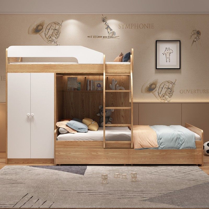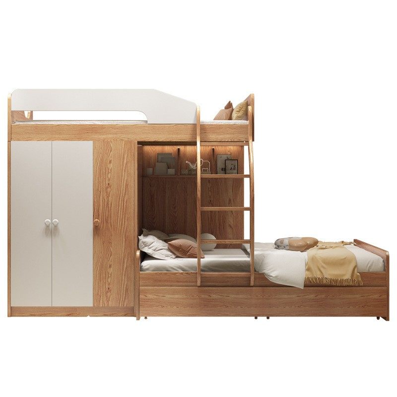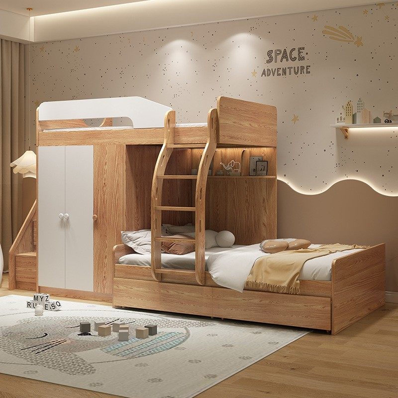 实木平行交错式上下床带衣柜一体错位型高低床多功能小户型子母床