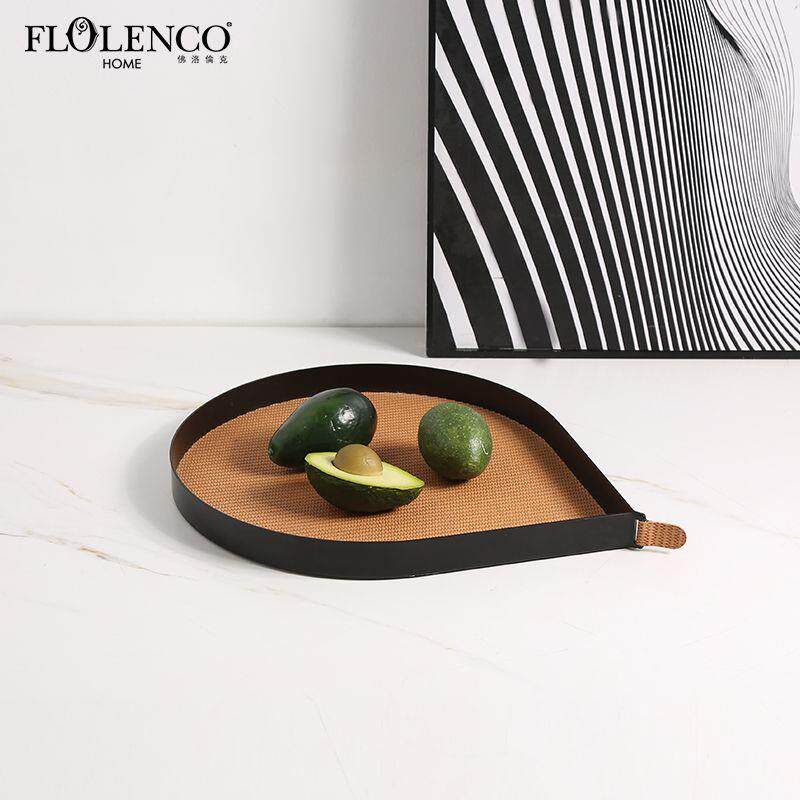 创意现代简约拼色椭圆皮纹托盘样板间茶几桌面高级感收纳盘装饰品