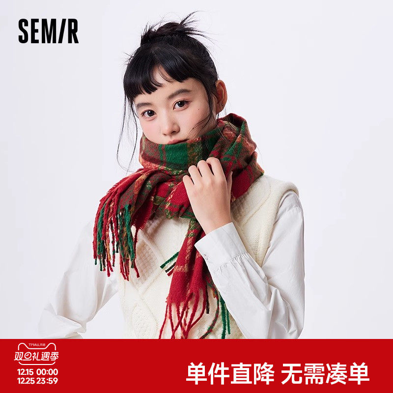 森马围巾女2024秋冬新款经典撞色格纹韩系氛围感披肩加宽围脖情侣
