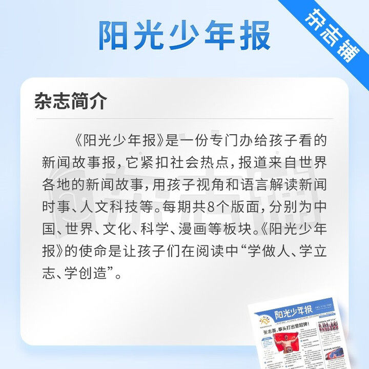 推荐理由:月投阳光少年报报纸小学版易烊千玺海报新闻时事热点杂志全年42期6-12岁往期过刊合订本2025年2026年征订阅周投团购一二三四年级