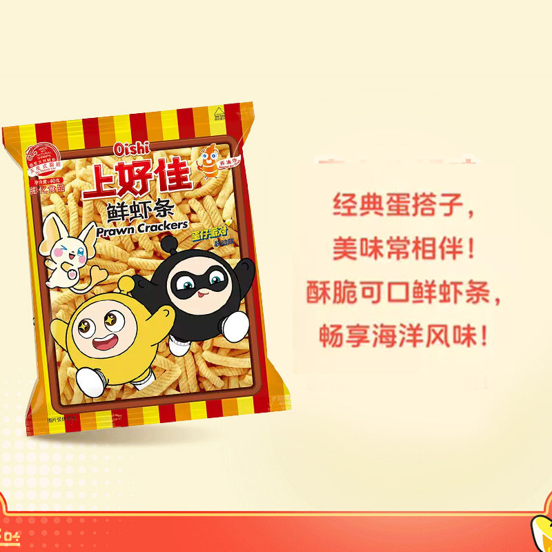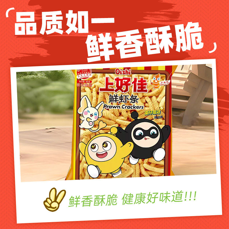 上好佳鲜虾条80g/袋儿童膨化小吃休闲早餐零食办公室追剧聚会