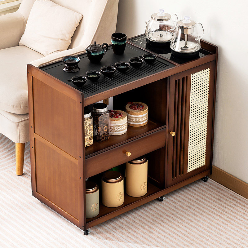 移动茶桌小茶台烧水壶一体实木煮泡茶简约轻奢阳台茶几家用茶水柜