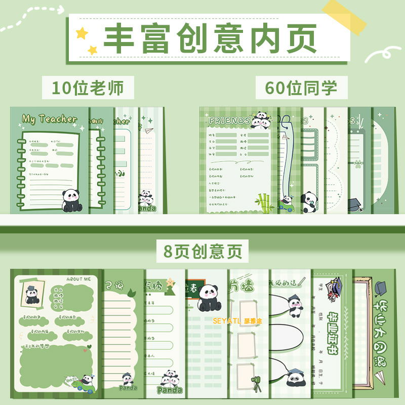 SEYATL同学录高颜值毕业册小学生高颜值熊猫收纳纪念本同学录/纪