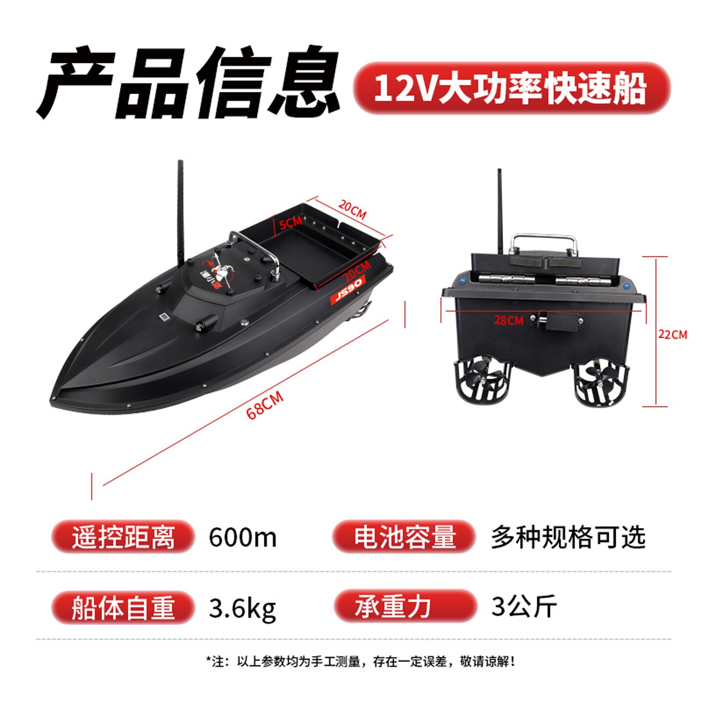 推荐理由:12v大功率打窝船高速遥控船拉网船拖钩GPS定位送饵船大马力下网船
