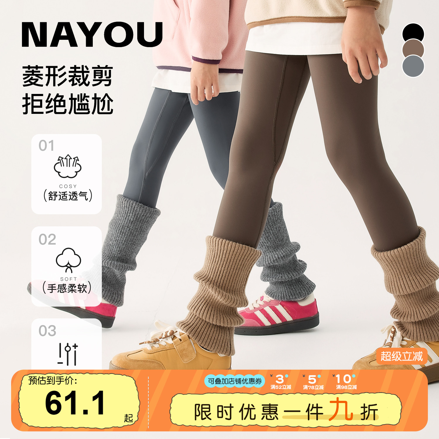 纳柚儿童裤子春秋女童鲨鱼裤中大童长裤瑜伽裤外穿加绒打底裤秋冬