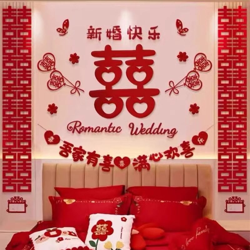 婚房布置套装拉花背景床头装扮男方结婚卧室全套女方婚礼用品大全