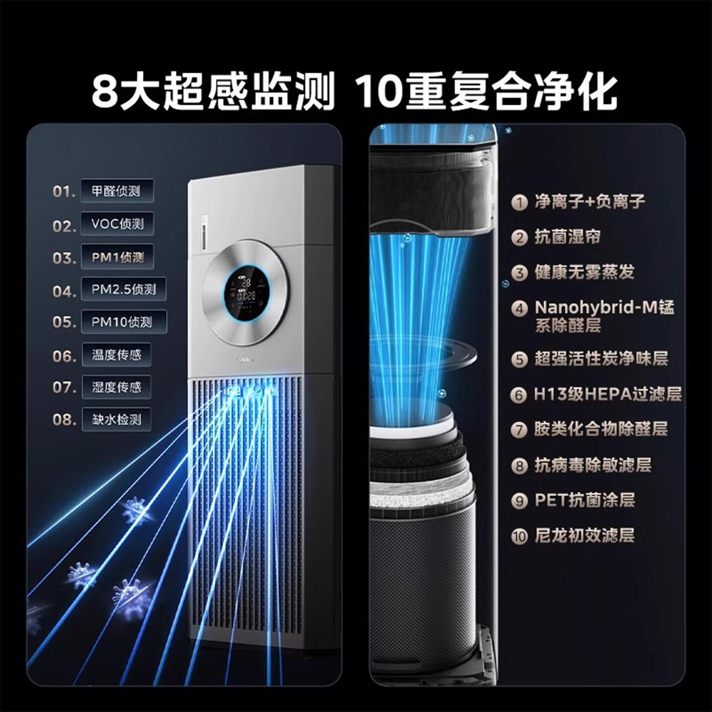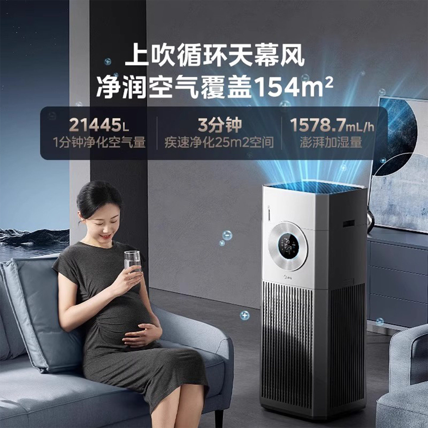 美的空气净化器新风芯系统宠物净化器分解除甲醛净雾霾T1000Pro新