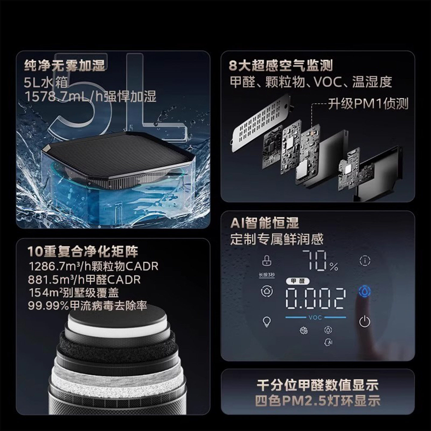 推荐理由:美的空气净化器新风芯系统宠物净化器分解除甲醛净雾霾T1000Pro新