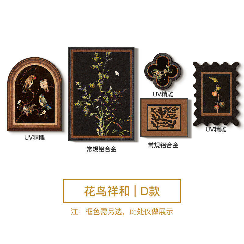 法式艺术古风客厅装饰画复古沙发背景墙挂画高级感中抽象组合壁画