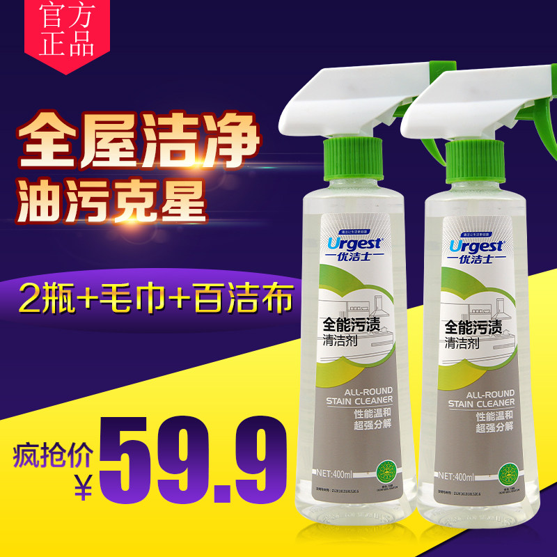 优洁士全能污渍清洁剂2瓶官网正品洗沙发厨房卫浴地板小白鞋胶印