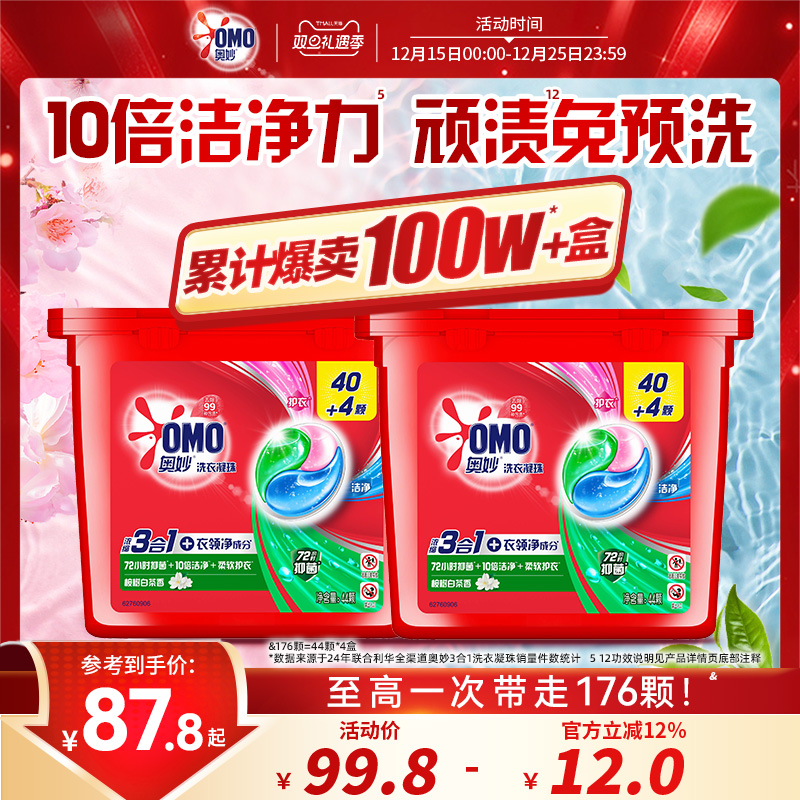 奥妙三合一洗衣凝珠灵除菌除螨洗衣球洁净护衣桉树香囤货装旗舰店