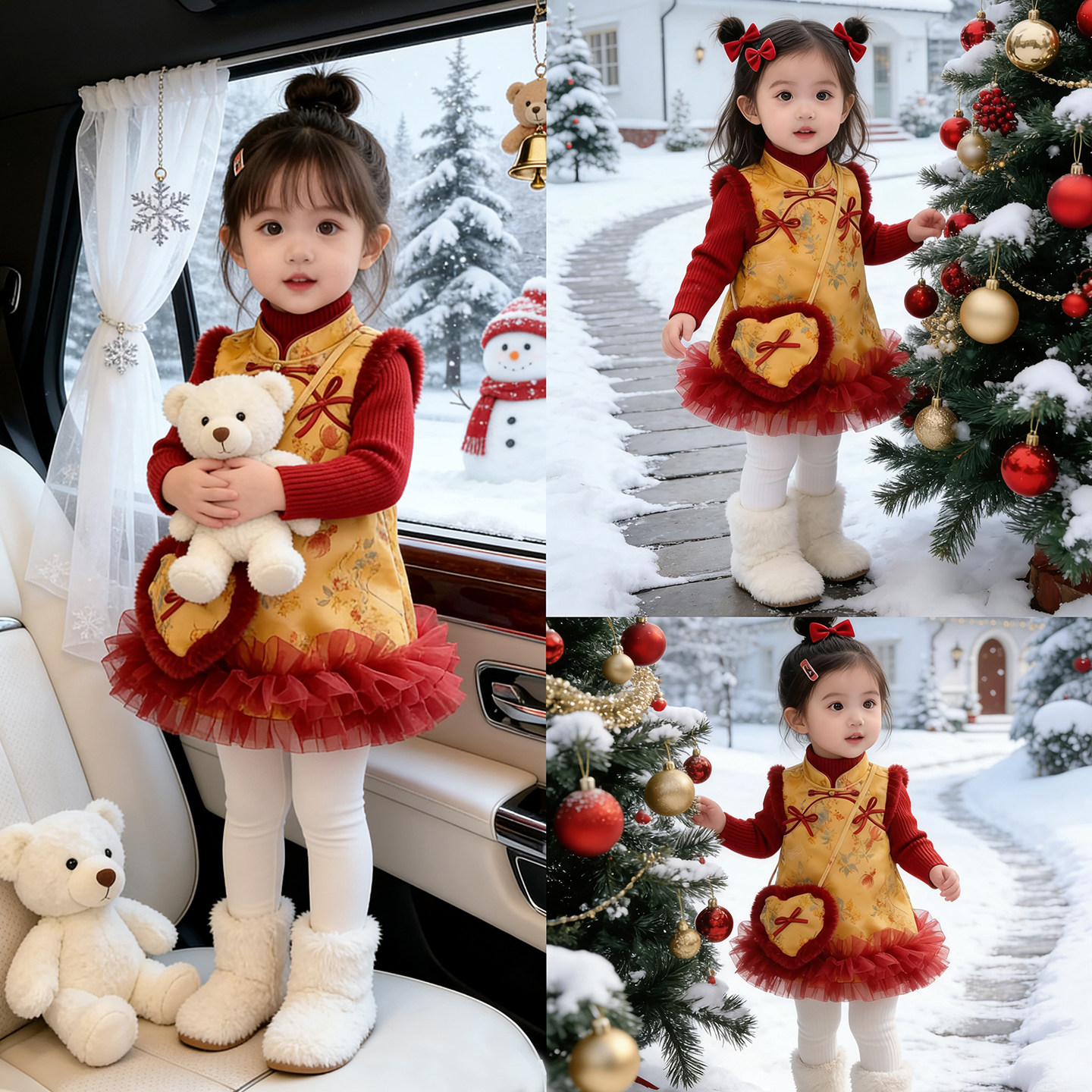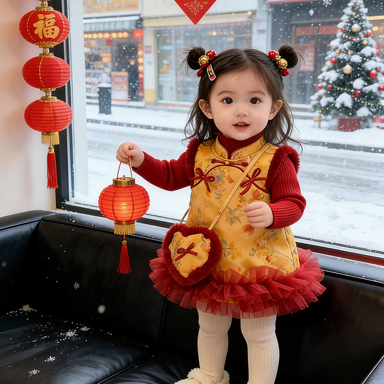 推荐理由:高端女童国风背心裙冬装2025新款周岁礼服小童女宝宝拜年服夹棉