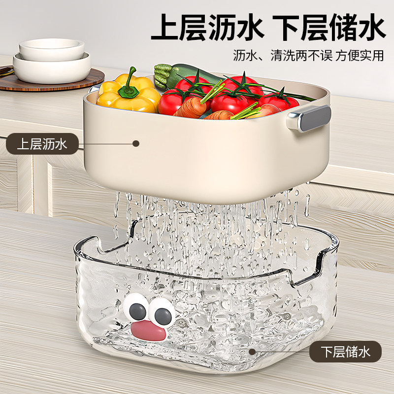 双层洗菜盆沥水篮多功能厨房收纳篮家用洗菜篮水果篮客厅淘洗菜盆