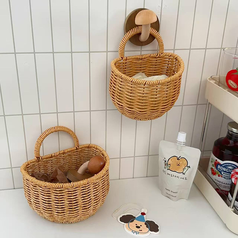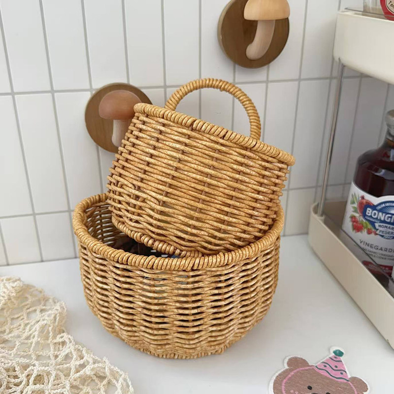 厨房姜蒜收纳筐壁挂仿藤编织篮手提小篮子鸡蛋筐水果篮宿舍零食筐