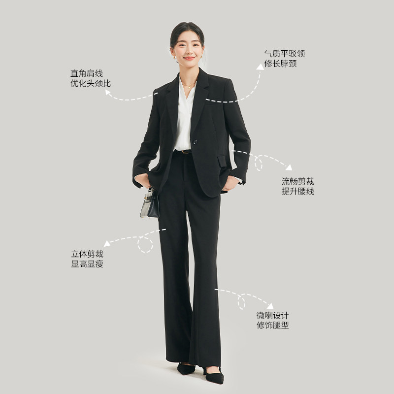 推荐理由:图曼朵黑色西装套装女冬面试职场通勤考公修身大学生正装西服外套