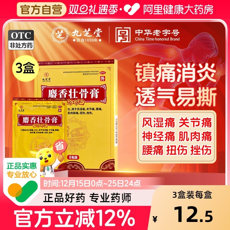 九芝堂麝香壮骨膏药贴镇痛消炎舒筋风湿类扭伤腰椎劳损官方旗舰店