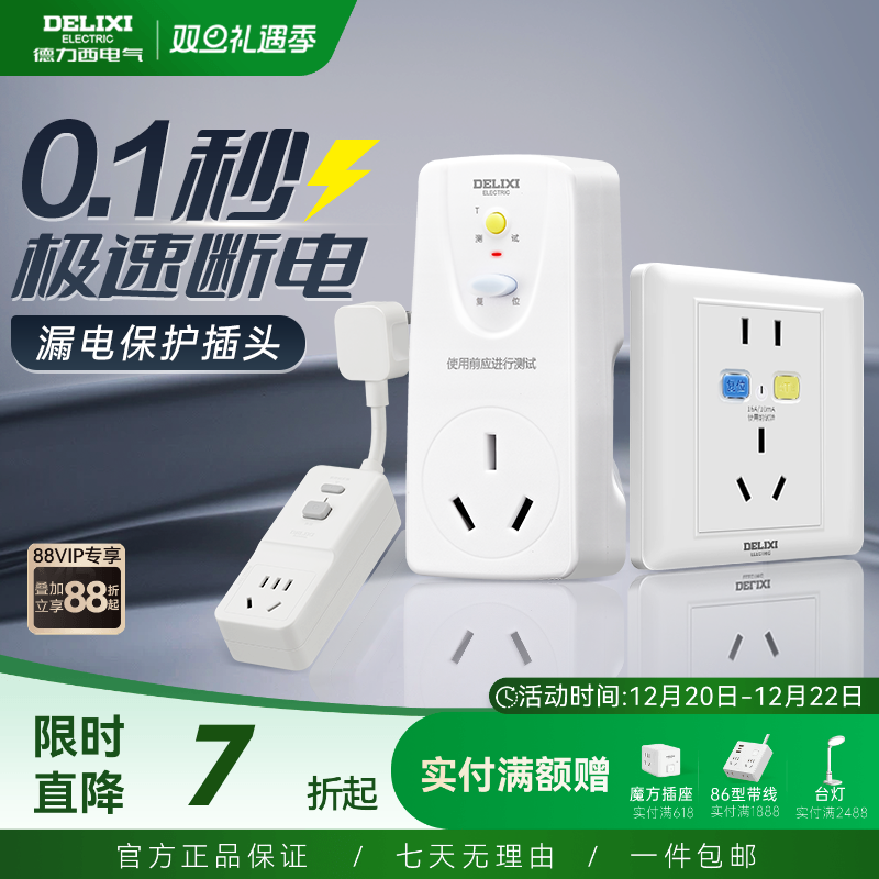 德力西漏电保护器插头插座16a空调电热水器自动断电漏保开关插座