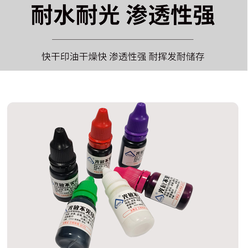 推荐理由:工业印油/快干印油金属印油10ML装可加于光敏章万能不灭印油批发