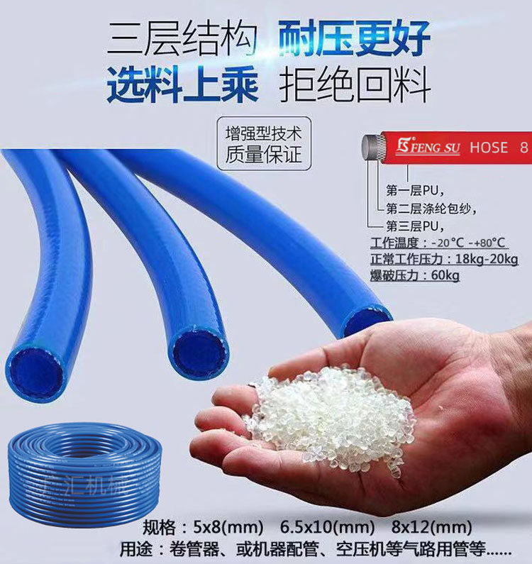 推荐理由:PU夹纱管高压包纱软管气鼓卷管器空压机气泵气管5*8mm6.5*10/8*12