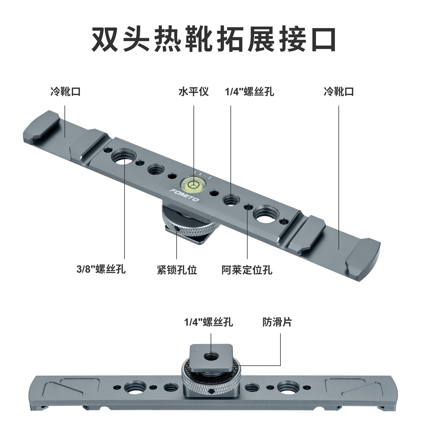 推荐理由:FOMITO双头金属冷靴支架相机热靴云台配件相机补光灯扩展支架1/4螺孔3/8螺孔一拖三头单反相机云台配件拓展