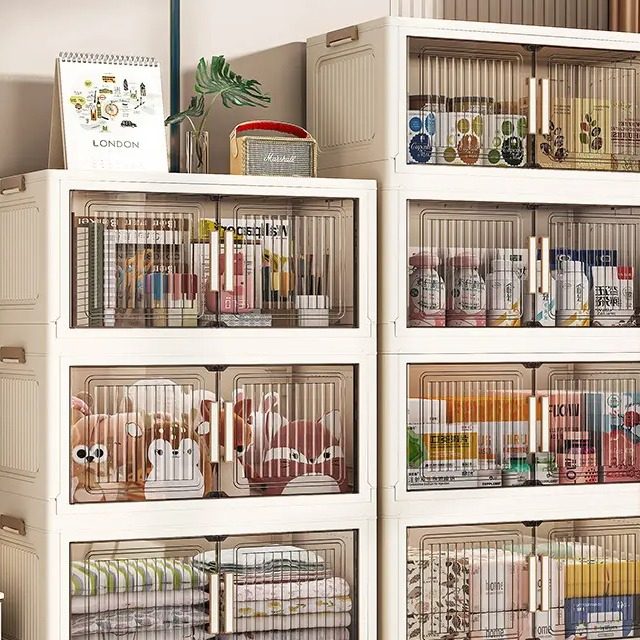 推荐理由:家用宽折叠收纳柜家用多层置物架塑料零食柜宝宝少儿玩具储物柜PP
