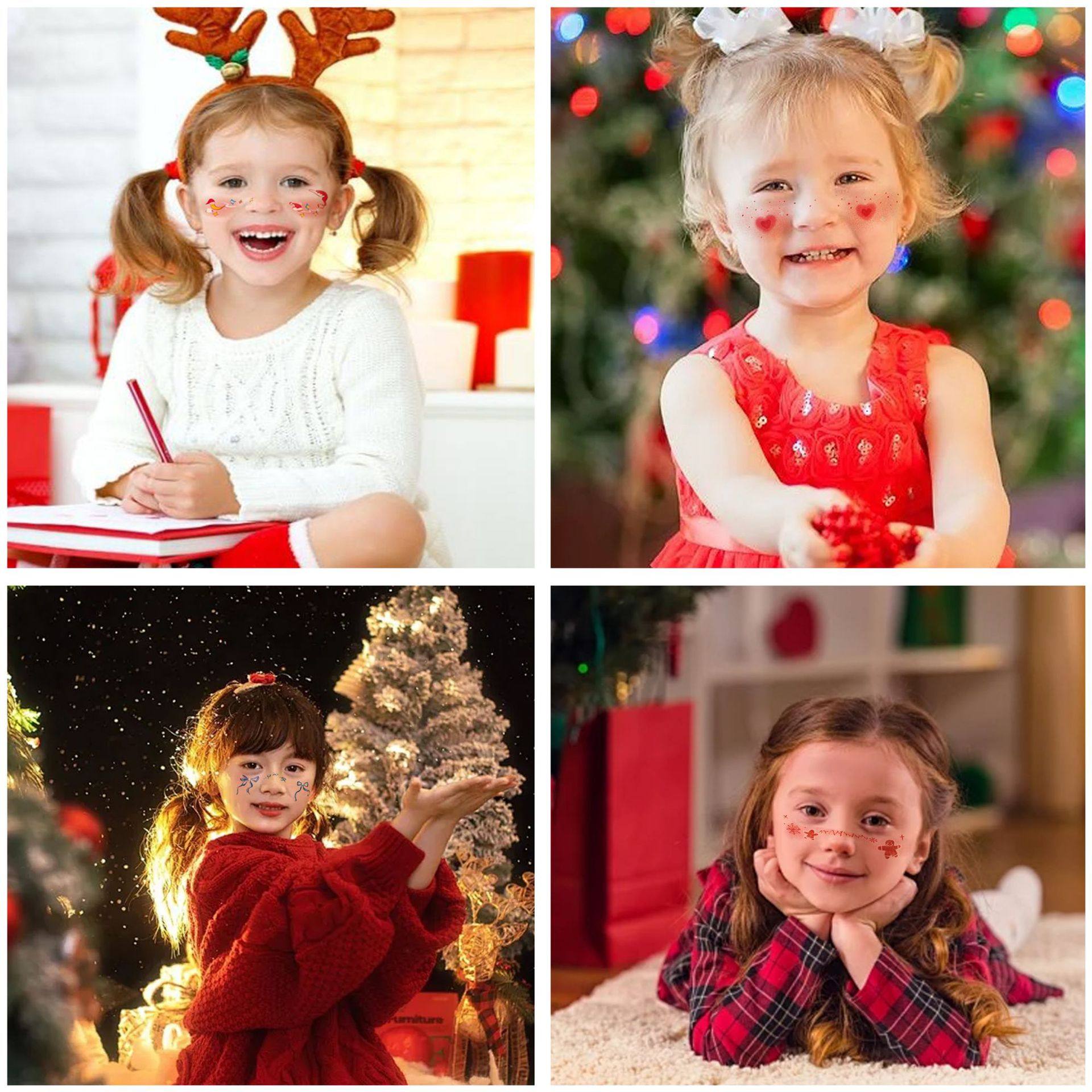 推荐理由:圣诞贴纸女孩儿童脸贴脸部彩绘面部可爱卡通小鹿女童圣诞节老人纹身贴五角星公主妆容脸贴水印化妆贴画头饰