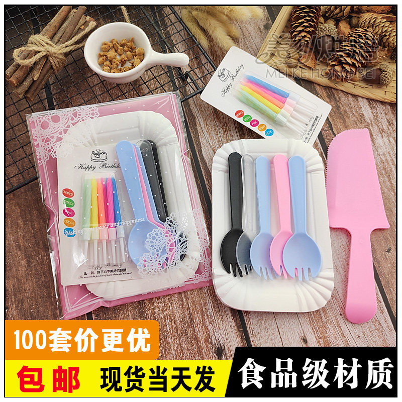 一次性纸盘刀叉蜡烛套装塑料烘焙生日蛋糕餐具包装高档餐盘碟子组