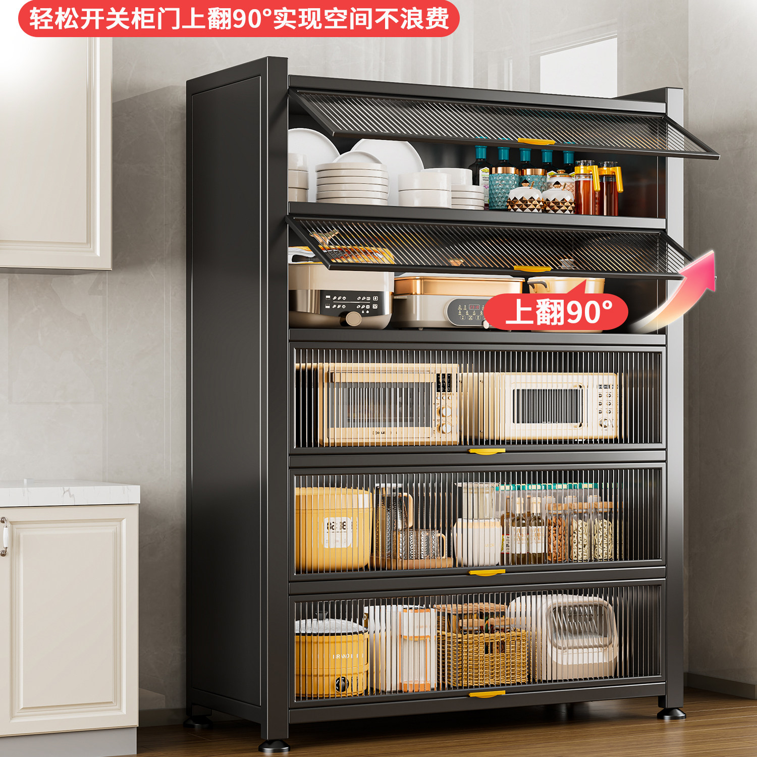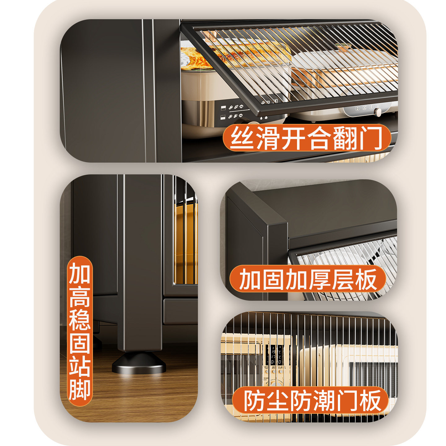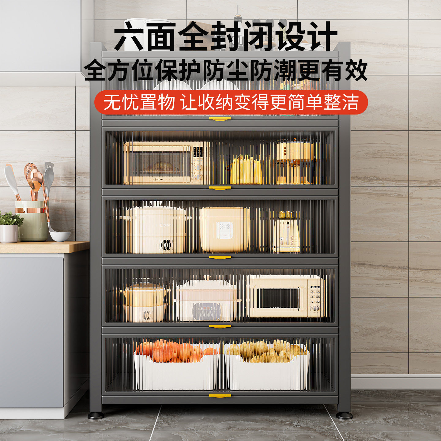 厨房钢制收纳柜防尘微波炉置物架大容量靠墙可移动储物柜餐边柜子