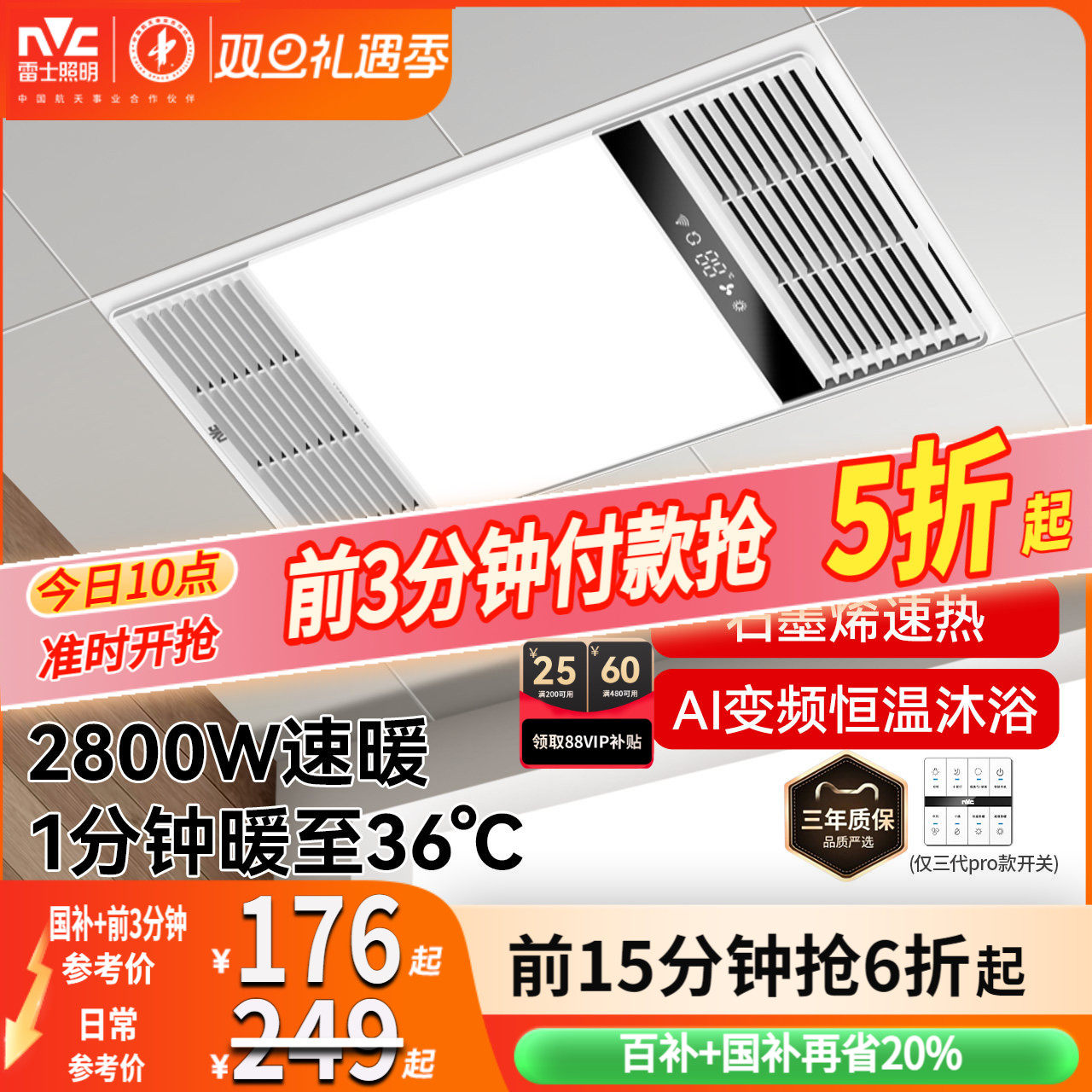 雷士照明风暖浴霸灯取暖集成吊顶排气扇照明一体卫生间浴室暖风机