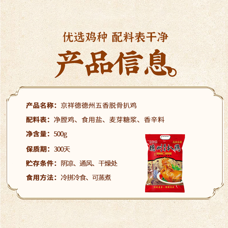 真空包装,保质期300天,领券后,9.9到手一只500g德州扒鸡