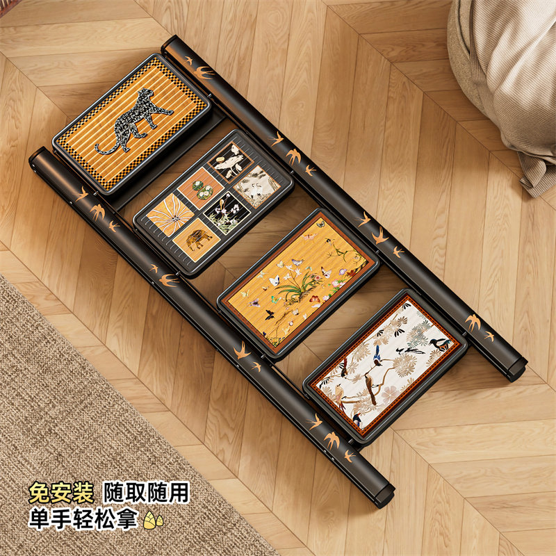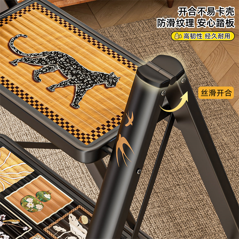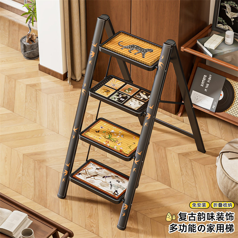 中古风梯子家用折叠伸缩复古小梯子梯凳便携人字梯室内加厚防滑