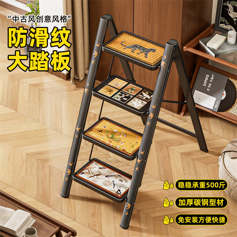 推荐理由:中古风梯子家用折叠伸缩复古小梯子梯凳便携人字梯室内加厚防滑