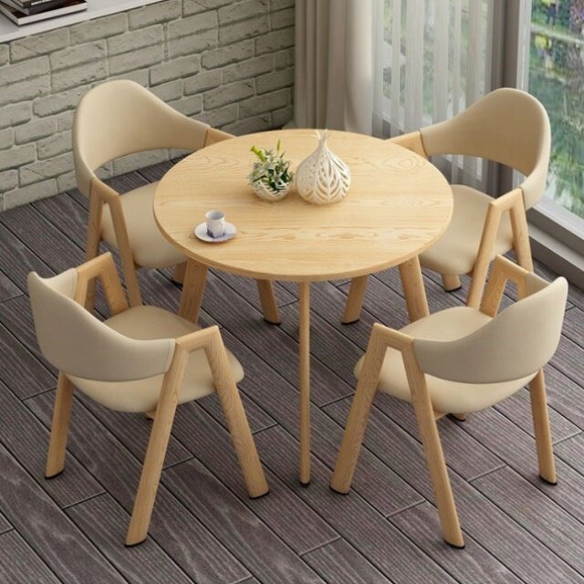 北欧休闲简约洽谈桌椅组合办公室接待圆桌会客咖啡厅奶茶店餐桌椅