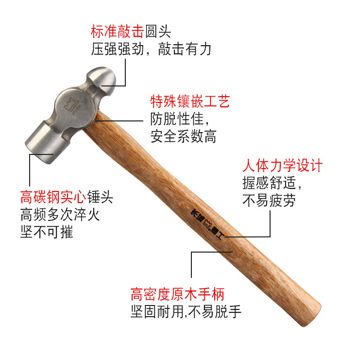 推荐理由:长城精工圆头锤木柄防滑家用小锤子小榔头0.5LB.1LB.2LB.3LB 五金
