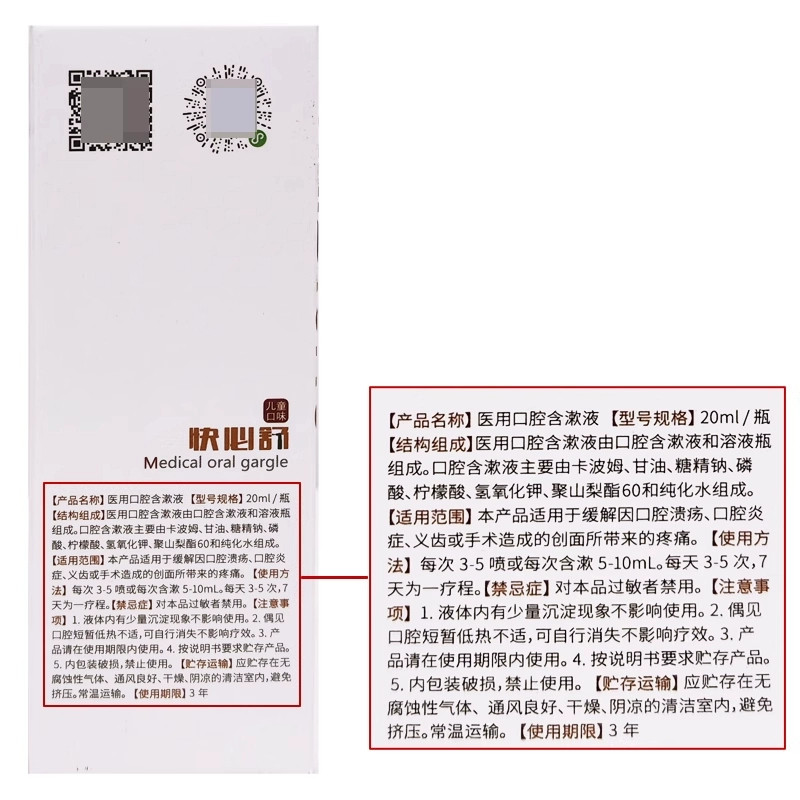 推荐理由:快必舒医用口腔含漱液喷雾成人款30ml儿童款20ml缓解口腔溃疡疼痛
