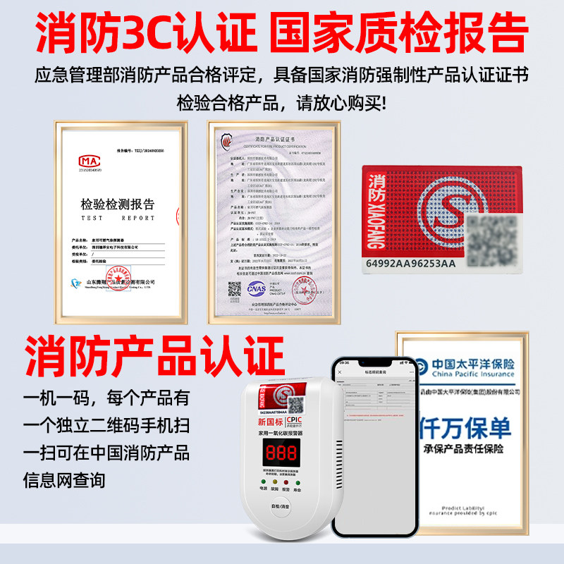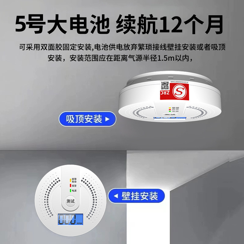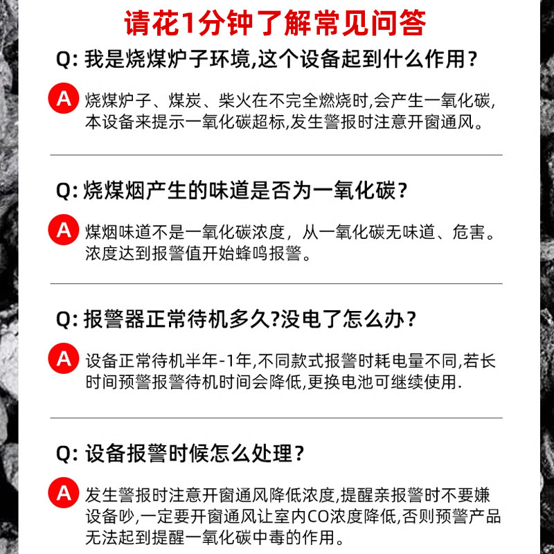 一氧化碳报警器家用室内煤烟炉煤气警报器户外露营防co中毒检测仪
