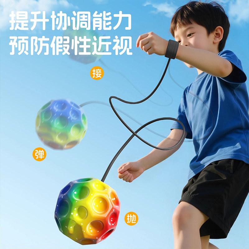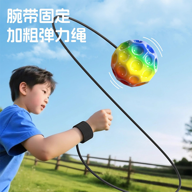 手腕弹力球带绳月球石儿童腕力球发光回弹甩甩球小孩玩具视力训练