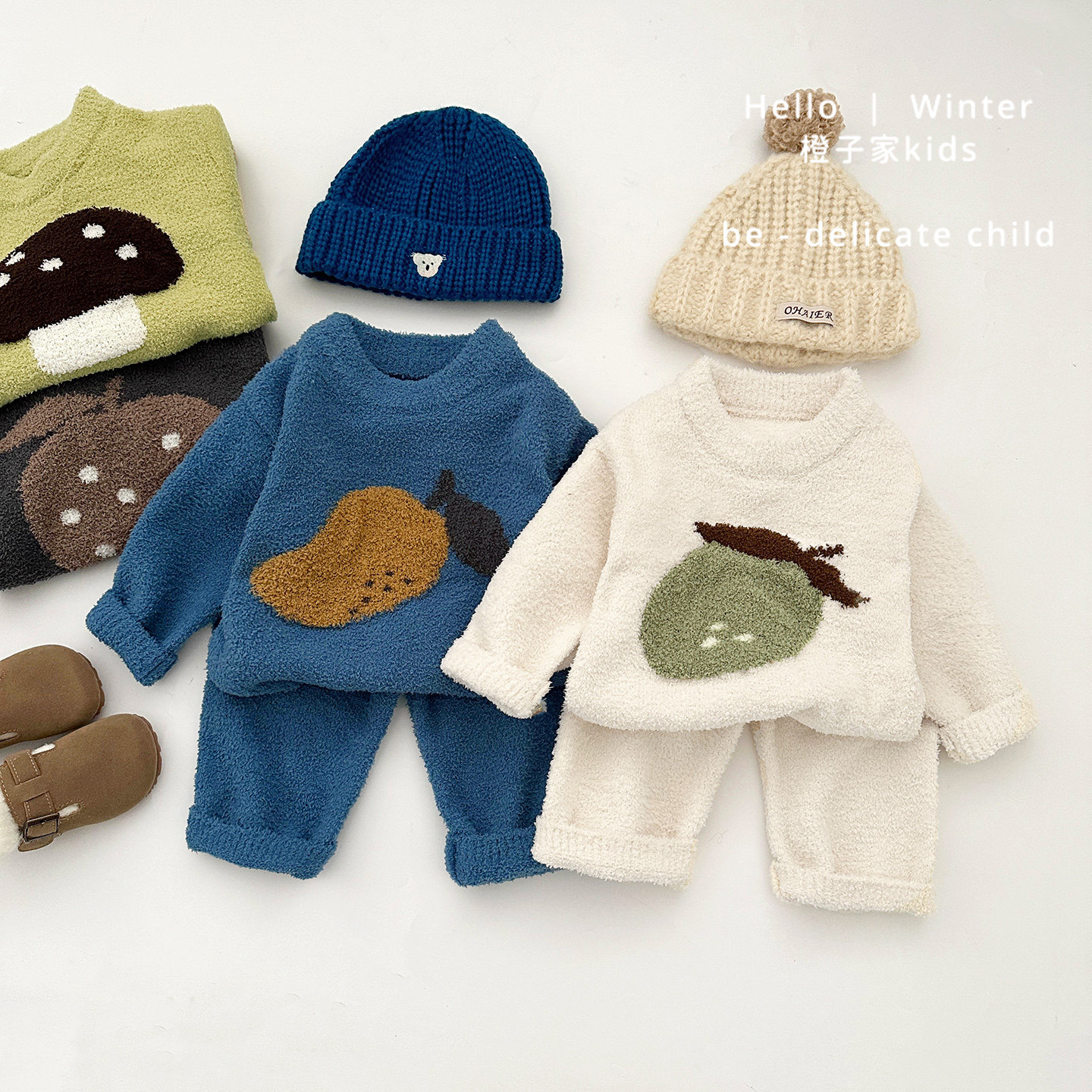 男童冬款洋气家居服套装女宝宝可爱加厚保暖上衣婴儿毛绒舒适裤子