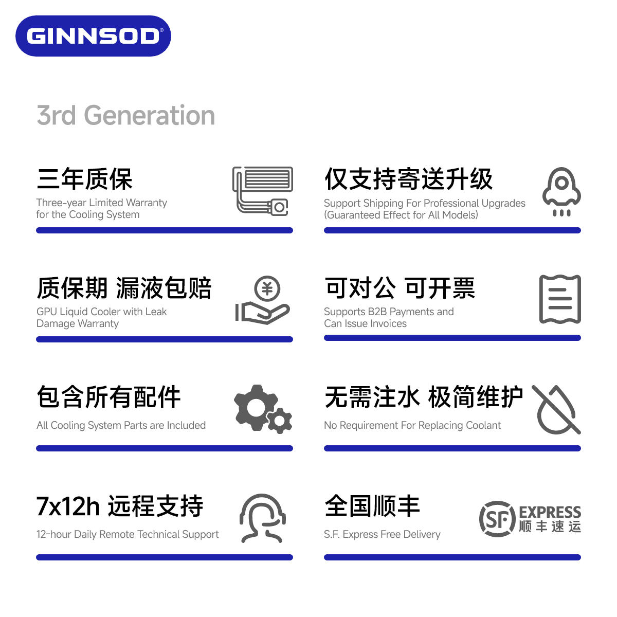 推荐理由:GINNSOD 4090 48G显卡水冷高温降温噪音啸叫专业级一体液冷散热器