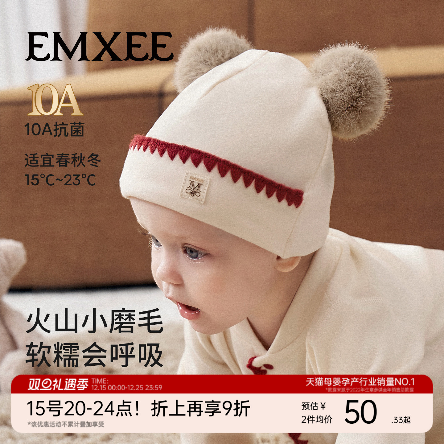 【新品首发】嫚熙婴儿帽子火山小磨毛秋冬季男女童保暖胎帽宝宝