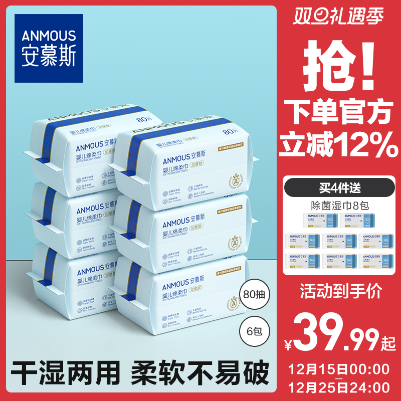 安慕斯婴幼儿绵柔巾手口屁专用宝宝干湿两用巾新生儿非湿巾棉柔巾